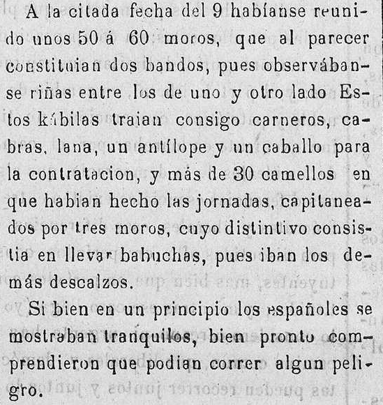 En 1885, grupos bereber de la zona del interior, viendo como las tribus que habían firmado el tratado de adhesión a España prosperaban -las tribus de la costa- y creyéndose marginados con respecto a estas, reúnen fusiles -posiblemente robados a patrullas francesas en Mauritania- y tratan de forzar un trueque entre carneros y pescado de la factoría ubicada en Río de Oro. Pero negándose el director de la fábrica  (Sr.Ponton) a este trueque atacan el puesto violentamente.
