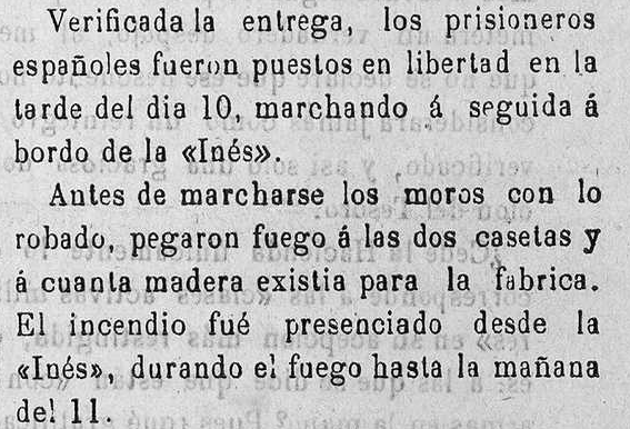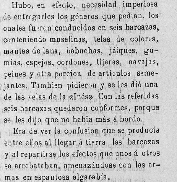 Tras el ataque, tomaron al resto prisioneros y los ataron con sogas al cuello. Los captores ordenaron a estos que vaciaran la goleta “Inés” amarrada al pontón -a la que sólo se podía acceder remando con un bote desde la orilla- y le entregasen todo lo que hubiera a bordo.