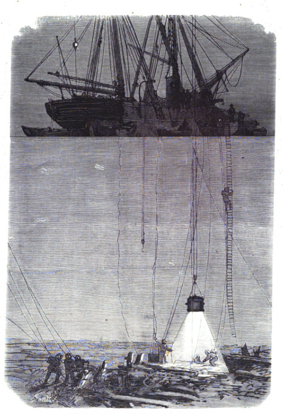 Aquellas noticias no eran otras que las crónicas de las aventuras del cazatesoros (y banquero) francés Hyppolite Magen en Vigo, que hacia 1870 se había decidió a organizar una impresionante campaña utilizando las últimas tecnologías de exploración subacuática para localizar los galeones y sacar del fondo de una vez por todas aquel inmenso tesoro. Entre aquellos avances científicos, en Rande, se pusieron en uso la iluminación intensiva eléctrica con lámparas sumergidas y las escafandras “Rouquayrol”, mucho más cómodas para el buzo.