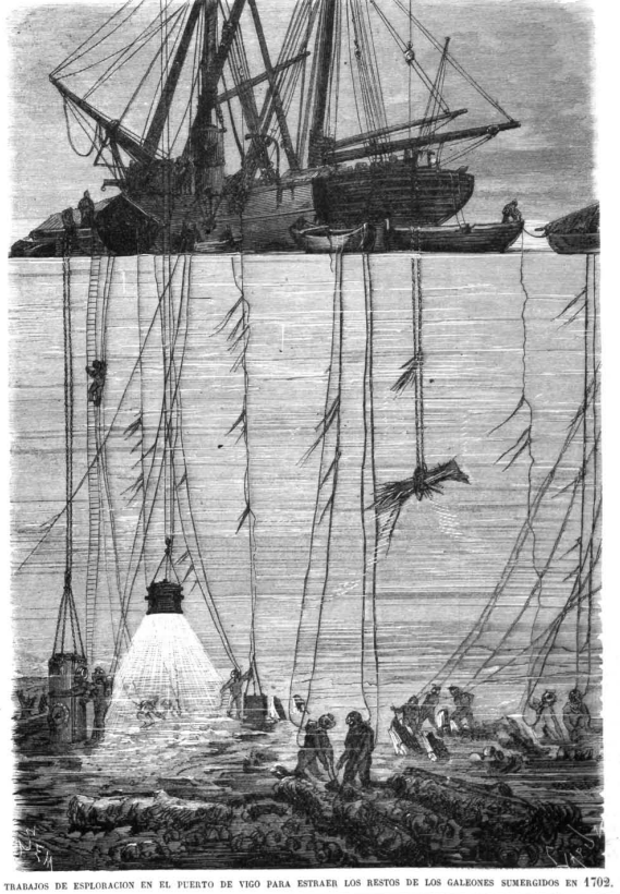 Según el artículo de Eduardo Rolland (31 oct 2018), el propio Bazin afirmaba que la ría de Vigo estaba “pavimentada de lingotes de plata”. ¿Cómo no va a encender la imaginación de Julio Verne esta historia de tecnología (decimonónica) y tesoros perdidos?