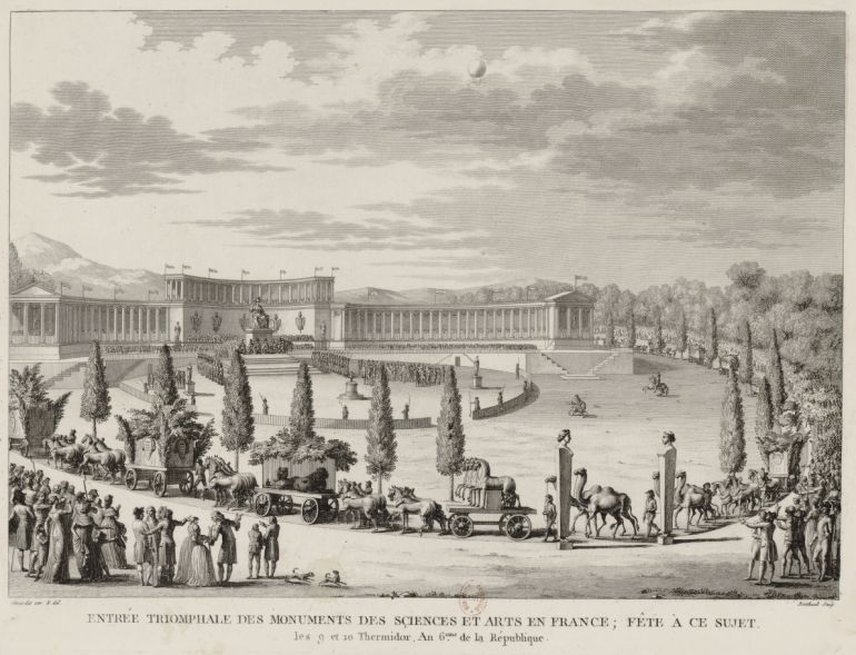 Sencillo, aquellos cuatro afamados caballos bronceados habían sido robados por las tropas de Napoleón (entre otras cosas) el 13 de diciembre de 1797 y trasladados a París durante el año siguiente. Inicialmente fueron colocados en las Tullerías y luego se trasladaron al arco triunfal de la Place du Carrousel siendo colocados en el arco que, siguiendo el modelo del Arco de Constantino en Roma, habían construido los arquitectos Pierre-François-Léonard Fontaine y Charles Percier, una de las parejas más famosas (aparecen a menudo citados como Percier y Fontaine) de arquitectos que trabajaron para Napoleón.