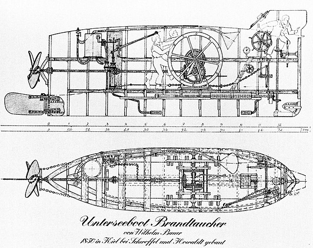 En 1850, el militar alemán Wilhelm Bauer construyó un submarino para atacar las naves enemigas danesas. Fue quizás el primer ingenio de esta clase con un propósito militar claro, aunque todavía no se había inventado el torpedo.