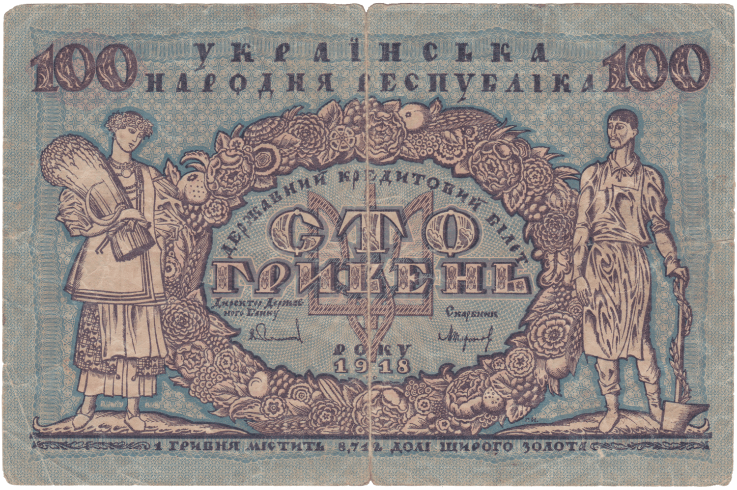 En 1918, tras el fin del imperio ruso de los zares, el gobierno de la República Popular Ucraniana aprobó el tridente como escudo de armas estatal. Una comisión encargada para elegir un nuevo símbolo consideró varias alternativas, entre las que despuntaron: