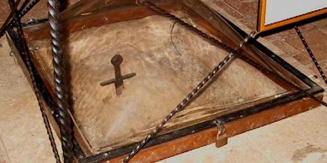La tumba del santo, a pesar de que las crónicas afirman que se encuentra en el interior de la Rotonda, no ha sido localizada, aunque según algunos estudios podría estar debajo de la roca en donde está la espada.