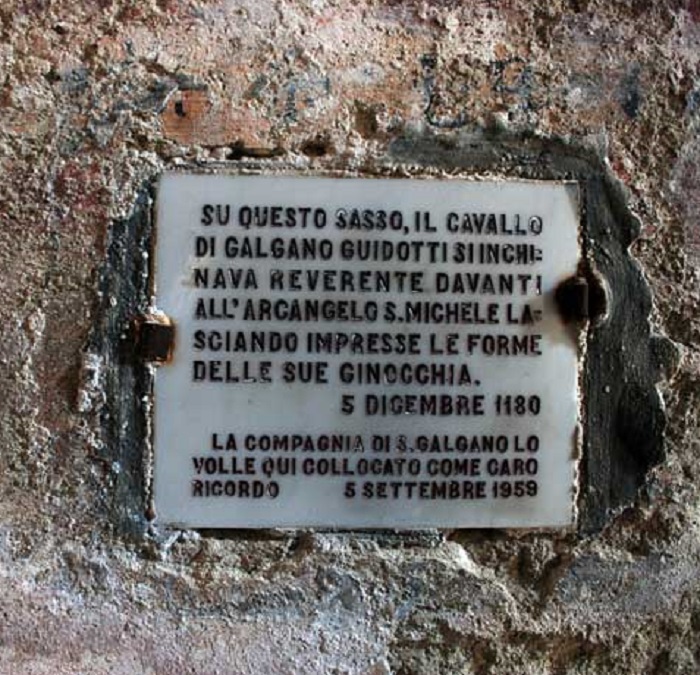 Galgano, al despertar, clava su espada contra una roca. Ahora ya no era un arma, era una cruz. En ese mismo lugar construyó una cabaña, a modo de ermita, en la que vivió hasta el final de sus días, dedicando su vida a Dios y a la meditación.