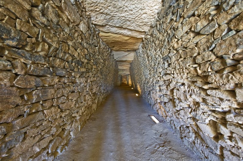 El legendario montículo irlandés Newgrange, descubierto en el siglo XVII, está incluido en la Lista del Patrimonio Mundial de la UNESCO. Se encuentra cerca de Dublín (Irlanda). Es un enorme montículo construído en piedra, turba, granito y cuarzo blanco. En su interior, un pasillo de 18 metros, hay una cámara funeraria en la que se colocaban recipientes cerámicos con restos, techada con una altura de unos 6 metros. El conjunto tiene una altura de 13,5 my su diámetro es de 85 m.