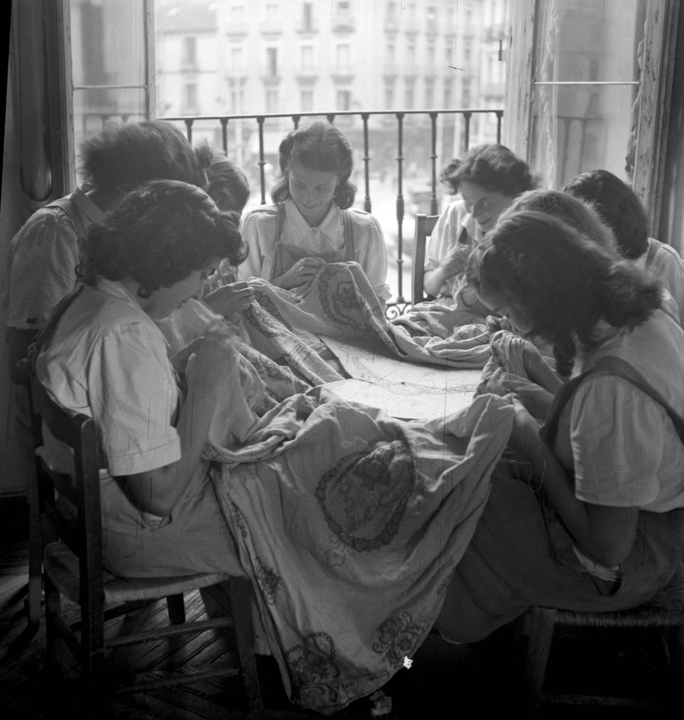 En esta época, el estallido de la Segunda Guerra Mundial supone la vuelta a España de algunos creadores españoles afincados en París como Cristóbal Balenciaga, quien se convertirá en el modisto estrella tanto de la antigua aristocracia cortesana como de la nueva aristocracia de la dictadura, mientras comienzan a destacar otros nombres en la alta costura, y, paralelamente, las obreras de la aguja, de una manera anónima, confeccionan en los talleres desde las prendas más populares hasta los modelos más exclusivos.
