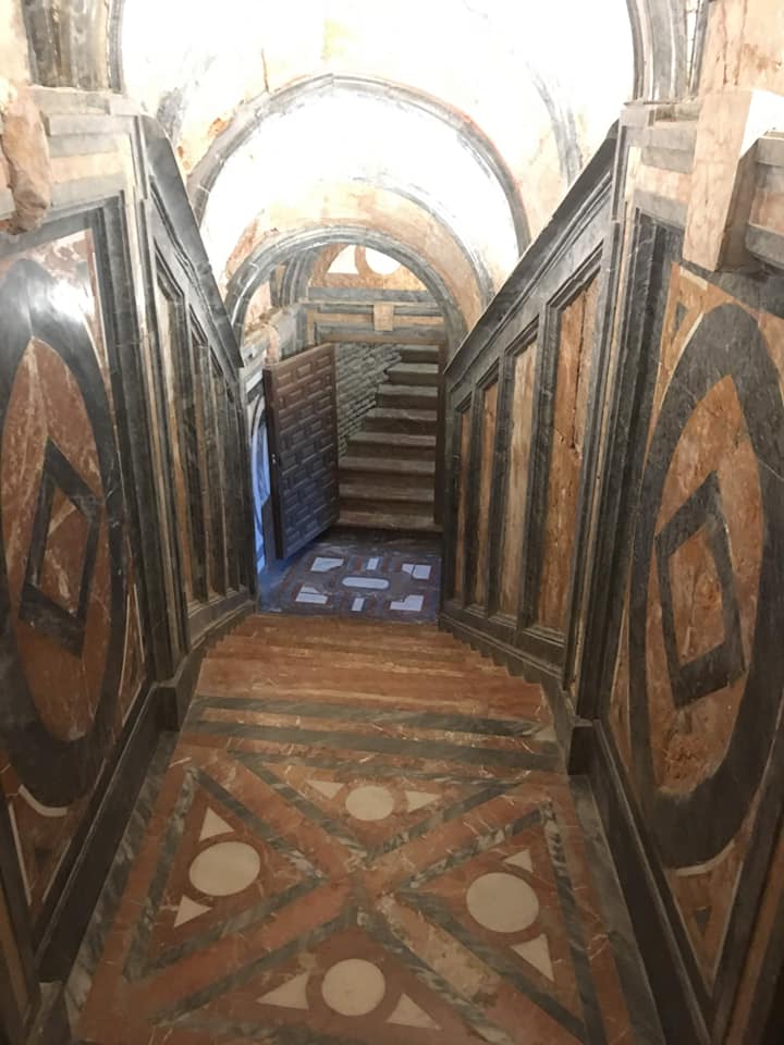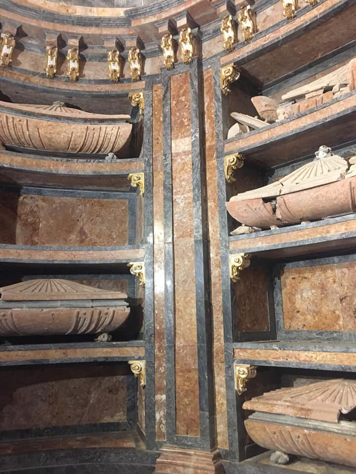 El recinto funerario tuvo el objetivo de imitar la cripta de los reyes de El Escorial, de hecho los materiales y la forma en la que está construida son similares a la cripta escurialense.