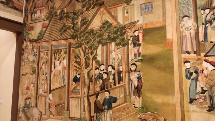 El palacio es interesante ya no solo por su calidad arquitectónica, sino por que tiene una sala en la que las paredes están decoradas con papel de arroz chino. Esto es excepcional, puesto que en china quedan pocos ejemplares de este papel. En Europa solo las podemos encontrar en la capital austriaca y en este Palacio de la Cotilla. Esta sala estuvo pensada para realizar espectáculos y ceremonias del té.