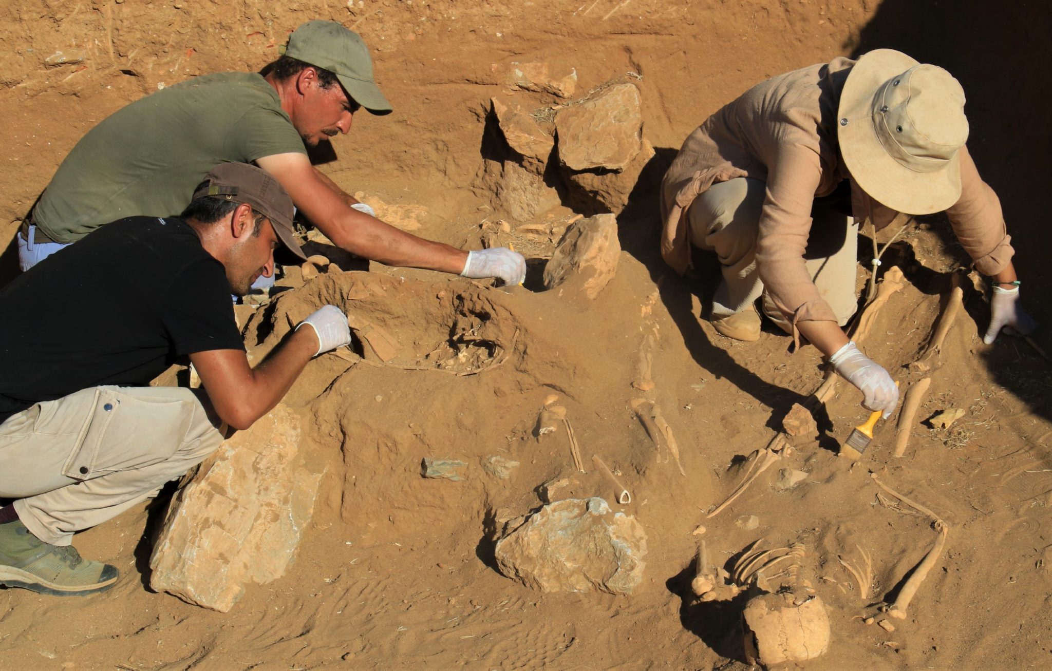 Los cuatro individuos fueron enterrados juntos, pero no con el mismo cuidado. El recién nacido fue depositado en el ánfora y enterrado cuidadosamente. Los tres adultos fueron enterrados directamente en la tierra en una disposición mucho más desordenada. Los arqueólogos creen que se trataba de un grupo familiar, y que el bebé, que habría fallecido antes, recibió una atención funeraria especial.