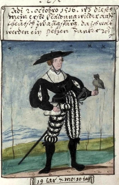 Matthäus Schwarz a la edad de 19 años. En una página del Trachtenbuch.