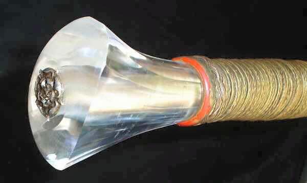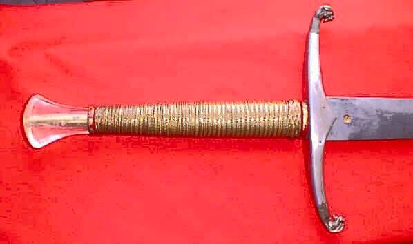 Tiene unos 122 cm de longitud,solo la hoja 91.4 cm. La empuñadura está forrada en hilo de oro de 18 quilates y tiene un pomo de cristal de roca con una rosa de Inglaterra en oro engastada en la parte superior. Cada uno de los extremos de sus guardamanos de 10cm están labrados con la forma de una cabeza de leopardo y bañados en oro.