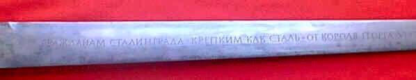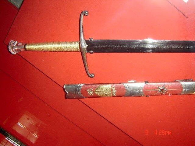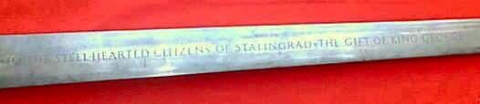 Forjada y grabada por orden de Jorge VI de Inglaterra, esta espada se hizo para conmemorar y homenajear a los defensores soviéticos que habían participado en la batalla de Stalingrado.
