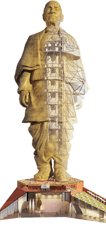La estatua fue diseñada por el estudio Larsen & Toubro de Mumbai y fue construida en de tres años y medio por 250 ingenieros y 3,000 trabajadores. El diseño original es idea de Ram Vanji Sutar, un escultor “veterano” en esculpir personalidades indias.