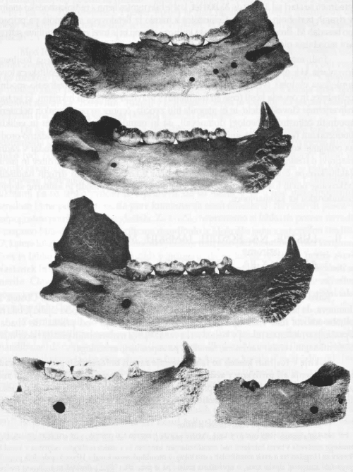 De los que aún se conservan, el más conocido es la mandíbula de un oso cavernario con tres agujeros en el canal mandibular.