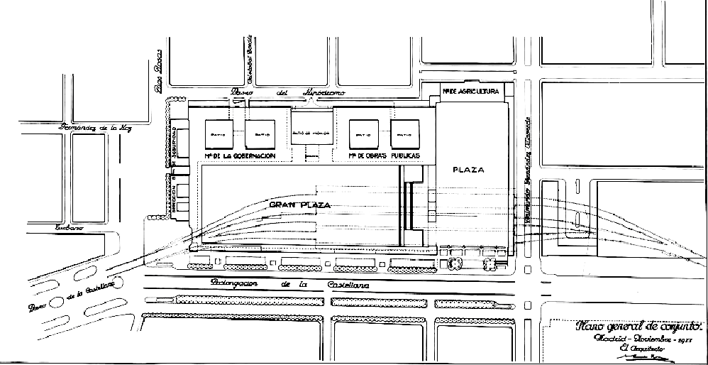 Aquellos que habiten la capital, reconocerán a primera vista la zona… Efectivamente, se trata de la actual zona “Nuevos Ministerios”, dentro del distrito de Chamberí, y actual sede de los Ministerios de Fomento y de Empleo y Seguridad Social.