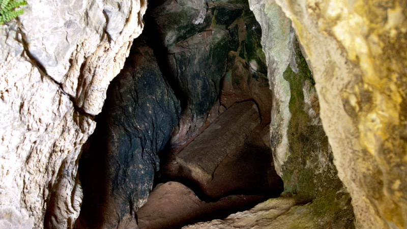 La cueva está en la falda meridional de la Peña Longa, lugar cercano al monasterio de Santa María la Real. Cuenta la leyenda que fue un caballero ligado a la fundación del citado monasterio el que encontró la gruta. En los alrededores también encontró dos pequeñas ermitas que guardaban numerosísimas reliquias santas (incluyendo algunas de San Pedro, San Juan Bautista o San Pablo Apóstol).