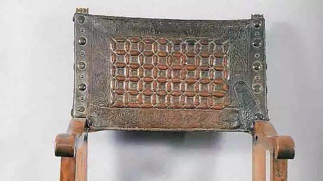 Tras ser detenido se procedió a inspeccionar el resto del domicilio, así encontraron el sillón del que hablaba el joven. Era un mueble nuevo —para entonces, siglo XVI— de brazos desmontables de madera de nogal que tiene el respaldo y el asentamiento de cuero decorados con motivos florales, dibujados mediante pespuntes, y geométricos, repujados. Aparentemente no tenía nada extraño.