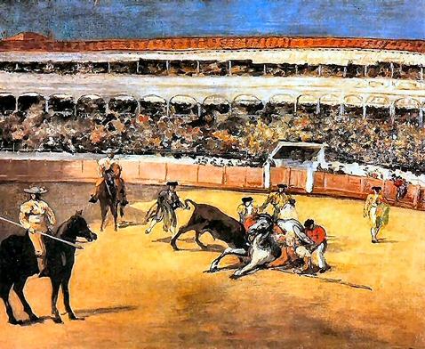 Dicen que Manet fue el primer pintor francés que estudió en serio a Goya y a Velázquez. Desde sus primeras obras supo de la importancia que podía tener la pintura española en su arte y en el de los pintores de su generación. En su viaje a España, tras asistir a las corridas en Madrid, pinta varios cuadros de tema taurino, con cierto aire impresionista. También trabó amistad con Eugenio Lucas Velázquez y realizó todas las visitas que el tiempo le dejó a los centros de arte españoles como el Museo del Prado o las colecciones del Greco en Toledo.