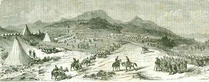 En 1859 partían de Algeciras —al mando del general O’Donnell— alrededor de 36.000 hombres, junto a la flota ordenada por Segundo Díaz Herrero, como parte de una fuerza expedicionaria que dividió en 4 cuerpos. Al frente de los 3 Cuerpos Principales puso a los generales Zabala, Ros de Olano y Rafael Echagüe. El general Prim, uno de los más destacados en la campaña, estaba al mando del cuerpo de reserva.