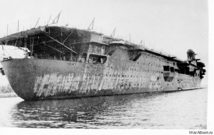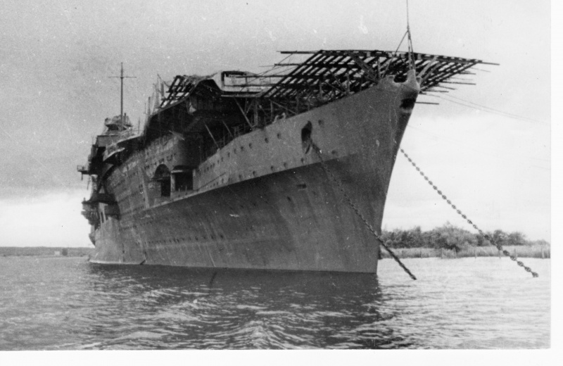 El “Graf Zeppelin“, desarmado y sin terminar, volvió a ser trasladado, por el avance soviético sobre las zonas alemanas. Y se fondeó cerca de la desembocadura del río Oder -en abril de 1945-, donde fue encallado, a fin de inutilizarlo, para evitar su captura.