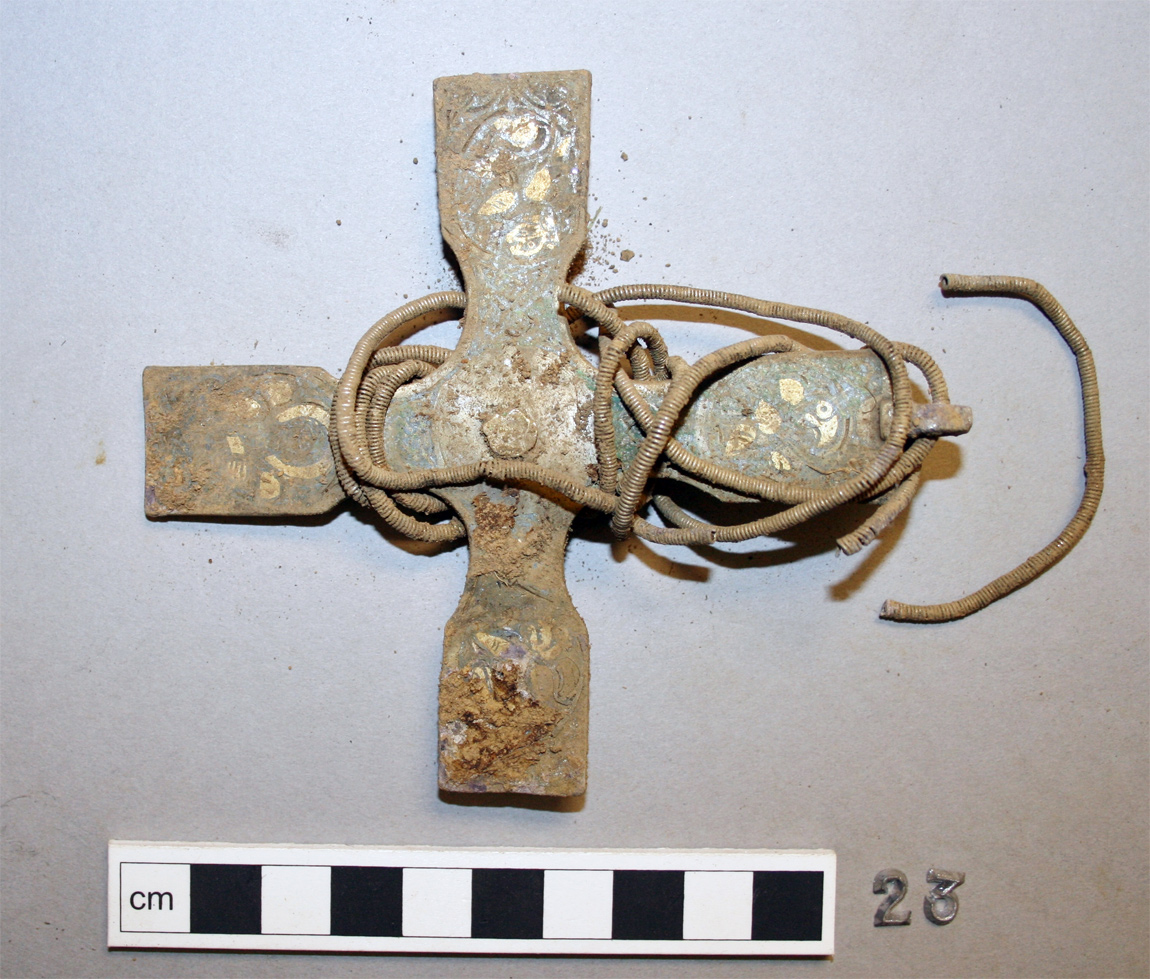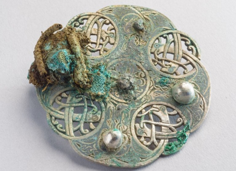 - Seis broches anglosajones con forma de disco de principios del siglo IX (muy parecidos a los del tesoro de Pentney que se encuentra actualmente en el Museo Británico).