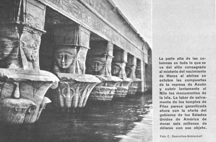 En 1959 España se unió a la coalición de países por la salvación de los templos nubios a punto de ser sepultados bajo las aguas de la presa de Asuán. Ayudaron a salvar el templo de Abu Simbel, participaron en las últimas excavaciones que se podían realizar en aquellas tierras antes de ser inundadas y rescataron otros destacados edificios.
