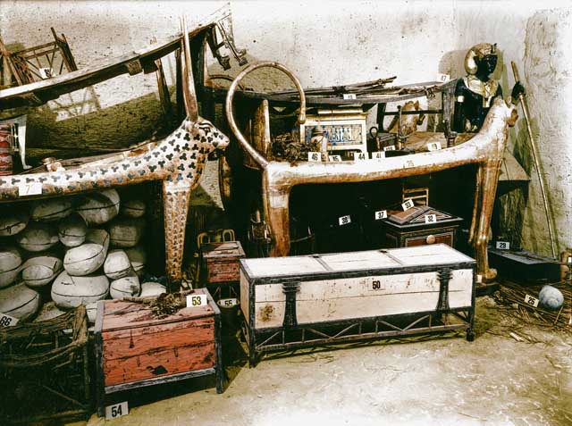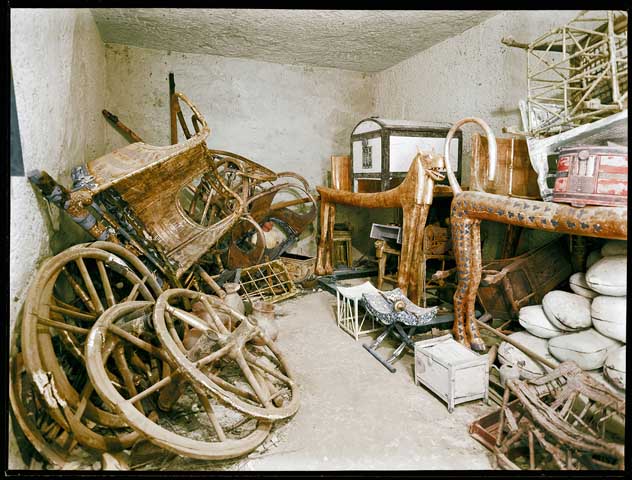 Creían que se encontrarían una habitación oscura y sobria con el sarcófago en medio. En su lugar, se encontraron con un santuario de madera dorada, una especie de caja gigante de oro. Cerca de esta caja, Carter encontró un pequeño “trastero” que contenía más de 5.000 objetos diferentes.