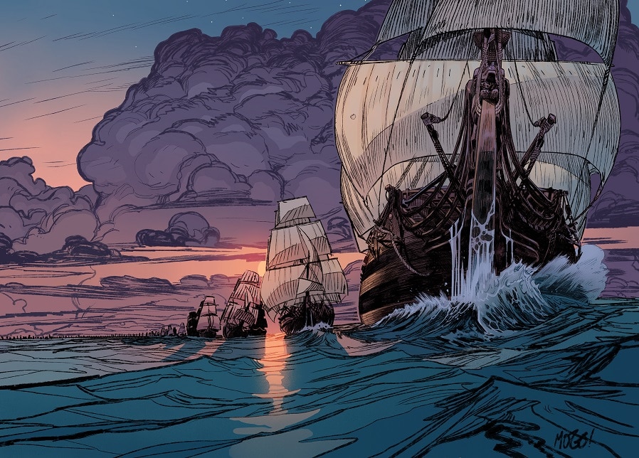 Esta receta dio sus primeros pasos en el cómic histórico ‘Espadas del fin del mundo’ con grandes resultados. Cada diálogo, cañonazo y detalle gráfico responde a una exhaustiva investigación, por lo que el lector tiene la certeza de que todo sucedió tal y como se cuenta, al tiempo que disfruta de una obra cargada de acción y personajes memorables.